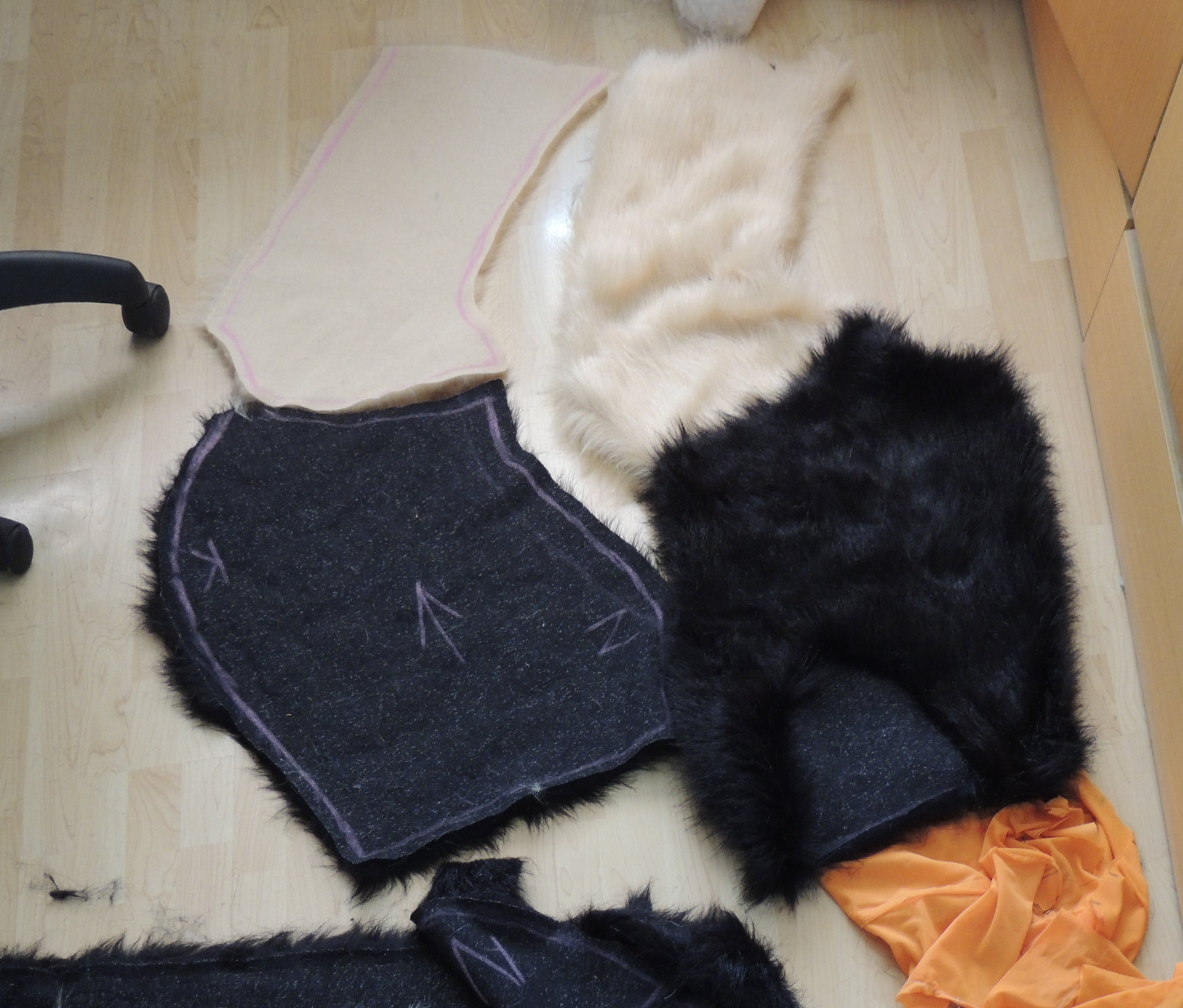 Než začnete stříhat (dražší) chlupatinu, je možné si navržený tvar vyzkoušet ušít ze staré nepotřebné látky - např. starých závěsů :)