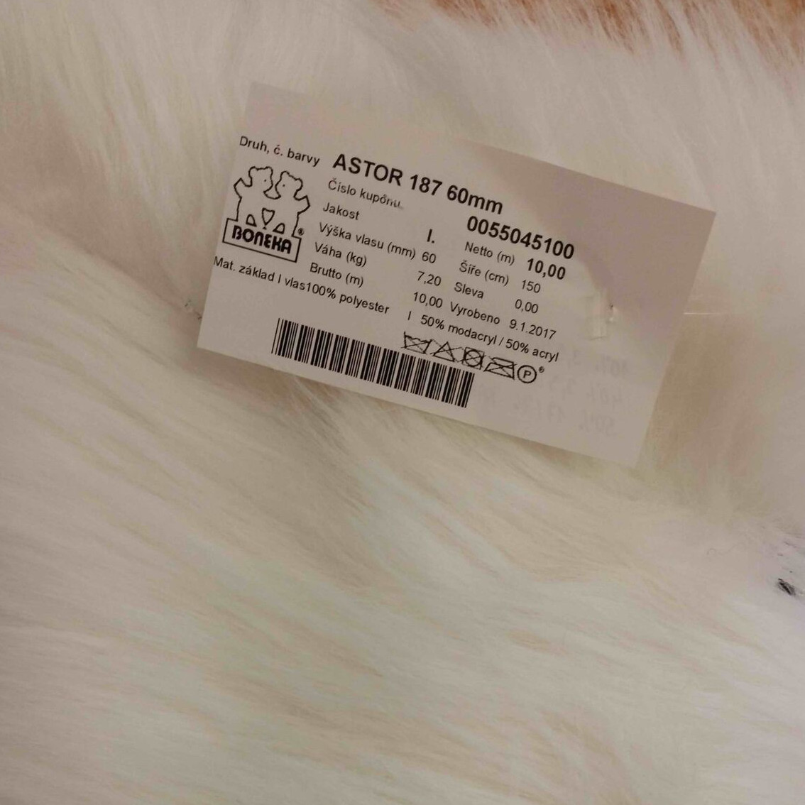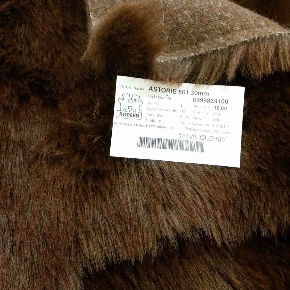 - Bonekan - hrubší chlupatina, nejnižší cena (kolem 400 Kč/m), český velkoobchod (tedy rychlé dodání), ve spoustě prodejen metrového textilu po republice (jako Kars) narazíte na jejich produkty akorát za vyšší ceny (asi o 150 Kč/m)